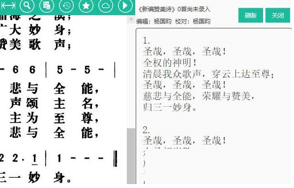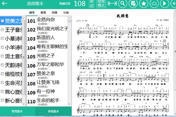 软件内置智能检索系统,支持编号查询与关键词搜索双模式。独有的歌谱管理系统可实现分类收藏与多平台分享,字体缩放功能适配不同阅读场景。音质优化技术确保播放清晰度,目录更新机制保持内容时效性。