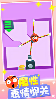 游戏设置超过200个渐进式关卡,前30关作为基础教学,帮助玩家掌握拉伸力度控制与关节固定技巧。中期关卡引入环境交互机制,例如可点燃的引线、重力感应平台等元素,后期更融合多阶段解谜要素,需要玩家规划连续动作路线。