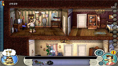 奥尔加母子作为关键NPC,会依据玩家行为产生动态反应。当连续三次成功整蛊邻居未触发警报时,贵妇犬会主动协助玩家布置陷阱。第七关卡新增天气系统,雨天场景中肥皂陷阱的成功率提升40%