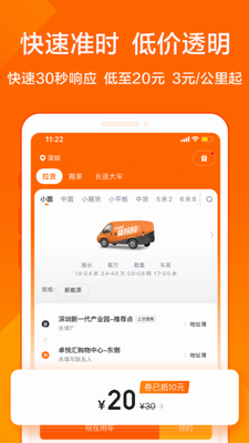用户端操作界面经过27次迭代优化,实现三步完成叫车:选择车型→输入地址→确认预约。智能地址识别系统支持模糊搜索,自动匹配历史地址数据,定位精度达米级。预约系统支持未来72小时用车规划,可设置多个装卸货节点。