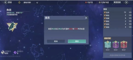 针对玩家反馈,新增三级重置机制:节点重置、星宿重置、星象重置。操作时需注意关联机制——重置前置节点将同步清空后续依赖项。保留全局重置功能,通过重置识海星象可一键初始化所有配置。