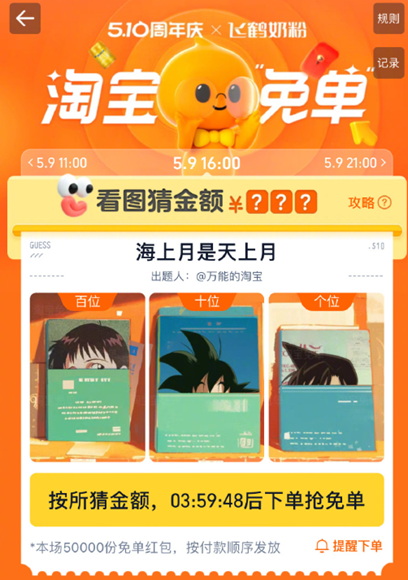 用户需根据系统展示的图片线索推测正确金额,并在指定时间段内完成下单操作。成功匹配金额的订单可享受全额免单优惠,具体实施需注意以下技术细节: