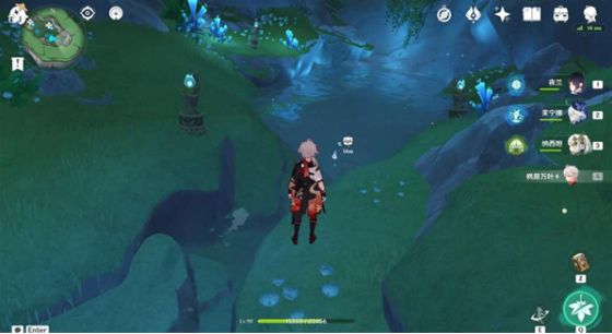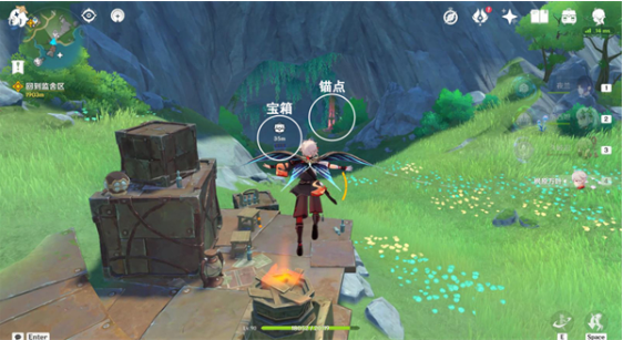 3、沿沉船缺口下潜进入隐藏洞穴,激活七天神像旁传送锚点后,注意收集悬浮在岩壁顶部的精致宝箱。此处建议切换弓箭角色,利用元素视野定位宝箱精确位置。