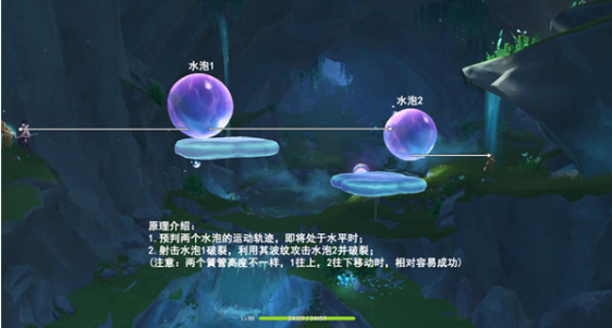 5、面对悬浮的四个水泡装置时,仅需射击标号为1的核心气泡。该机制存在视觉干扰,可使用雷元素攻击增强气泡轮廓显示,射击角度建议保持45度仰角确保命中精度。