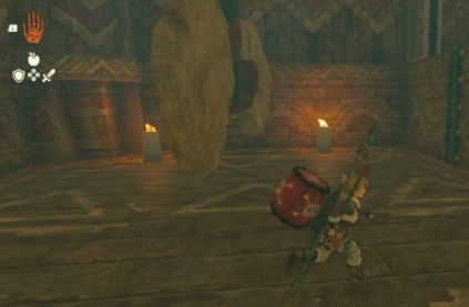 通过融化冰封容器获取计时爆弹后,建议将爆弹与盾面结合制造弹射装置。在齿轮平台区域需注意石板拼接角度,三块扇叶石板呈120度分布时,丘栗的气流可产生最大作用效果。