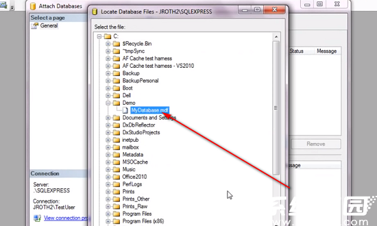 3、在文件资源管理器中浏览至目标文件存储位置,双击选择需要打开的.mdf格式文件。系统将自动加载关联的日志文件,形成完整的数据库文件组。