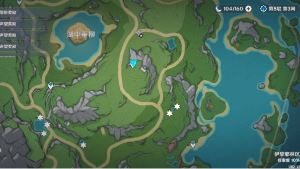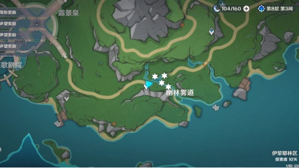 传送至幽林雾道锚点后向西南方滑翔,落点处可见三株植株呈三角分布。此处水域较深,建议提前装备渡海角色或使用冰元素铺路。