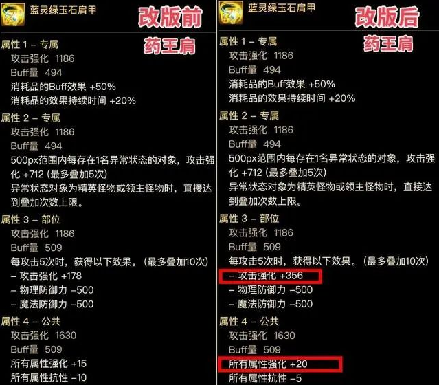 曾被誉为药王肩的该部位,在神界新增海贼护肩后地位有所波动。经实战测试,极限药水加持状态下仍可保持性能优势。改版后推荐词条组为【消耗品增益、领主攻强增幅、全属性15点强化、小攻强提升】,需注意单属性15点词条已退出主流配置体系。